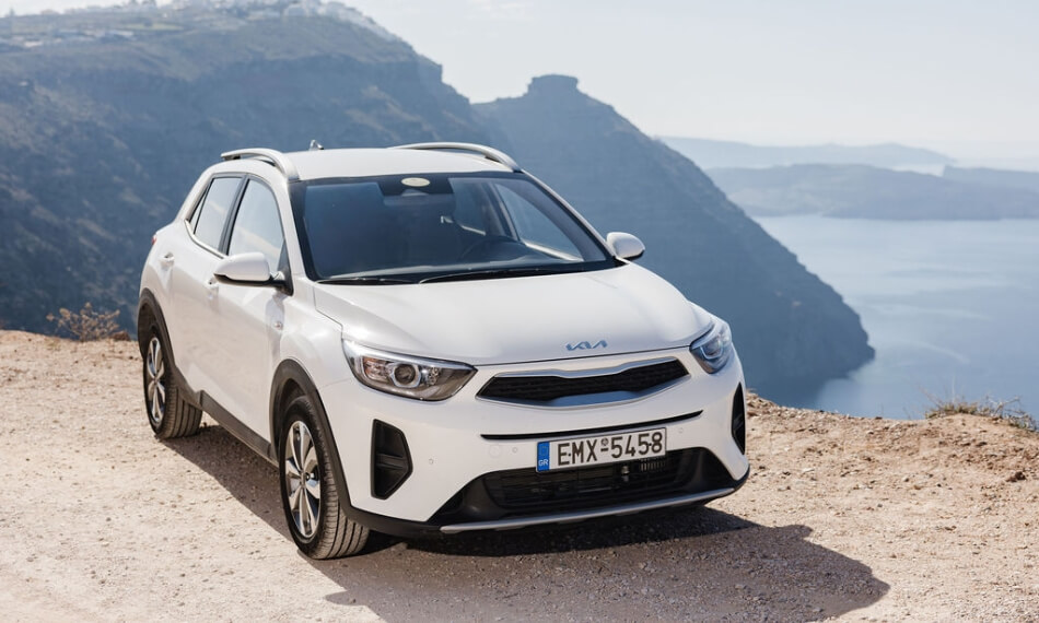 Kia Stonic Auto 2025 rental in Santorini by QuickRides Rentals automatic transmission, crossover comfort and stylish design.