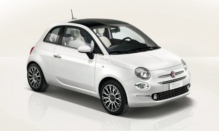 Fiat 500 Auto rental in Santorini by QuickRides Rentals, automatic transmission, easy parking and low fuel consumption.