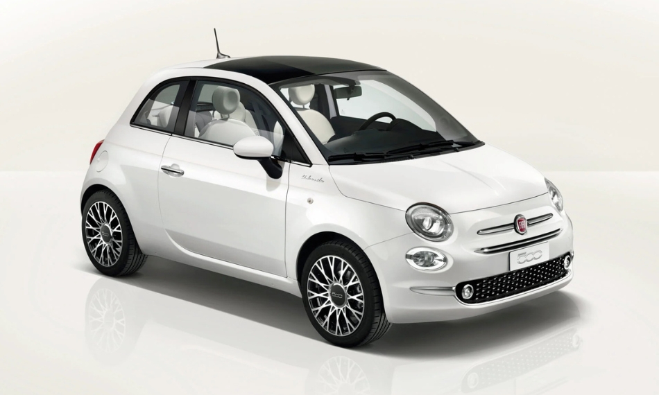 Fiat 500 Manual rental in Santorini by QuickRides Rentals, fuel-efficient, easy to park and fun to drive.